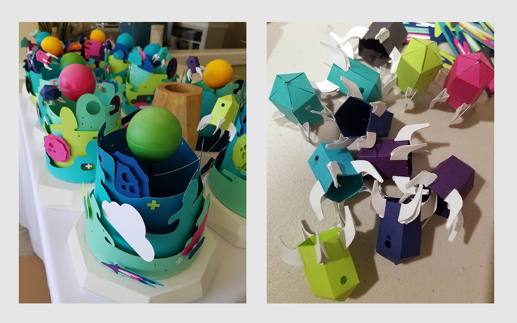 - I created handmade papercut nebula centerpieces for each of the 10 tables.